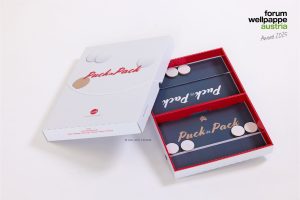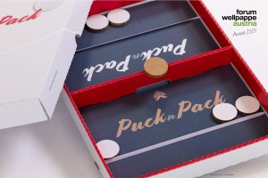 Mit PucknPack hat ein Lehrling der Wellpappe-Industrie ein Spiel entwickelt, das Spaß mit handwerklichem Geschick verbindet. Das Brettspiel ist leicht, stabil und flexibel einsetzbar. Perfekt geeignet für Messen, Schulen und Lehrlings-Events. Auf einer MC-Box montiert, zieht das Spiel garantiert alle Blicke auf sich! Gewinner Wellpappe Austria Award 2025 in der Kategorie Nachwuchs.