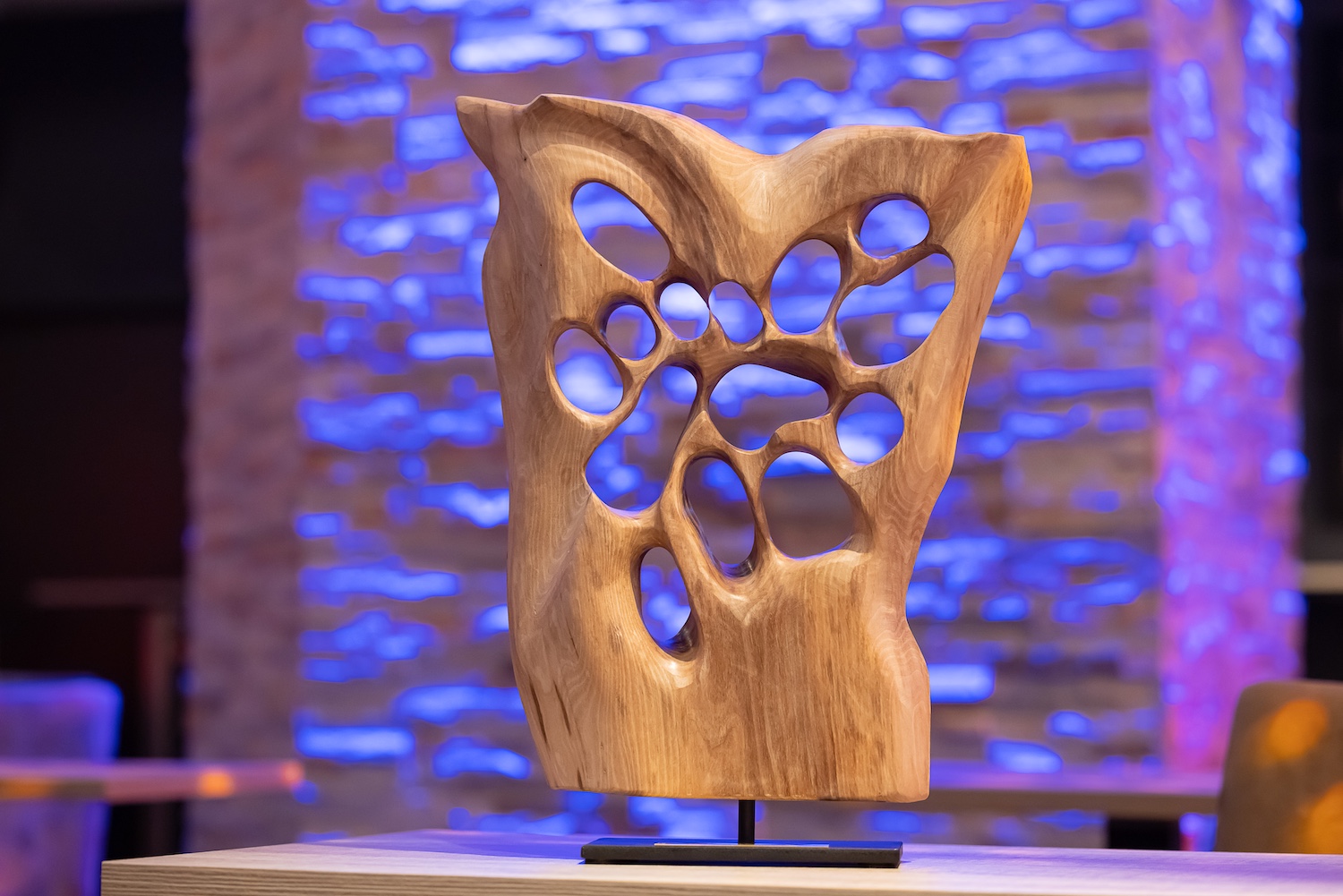 zusätzlich eine Trophäe des Vorarlberger Holzkünstlers Stefan Kresser.
